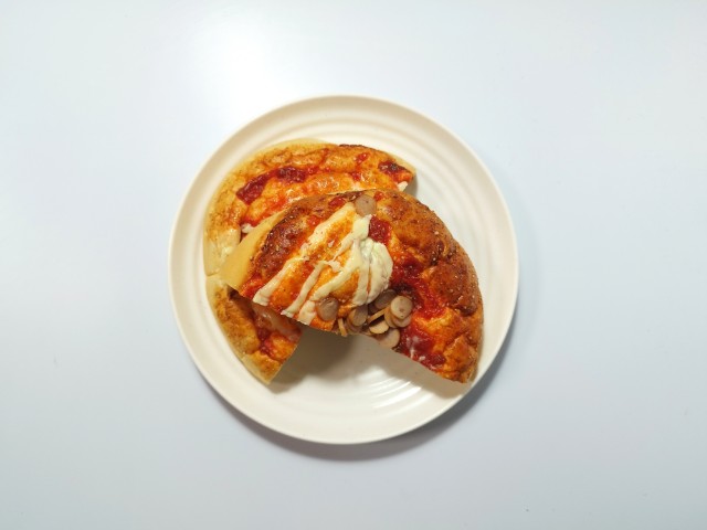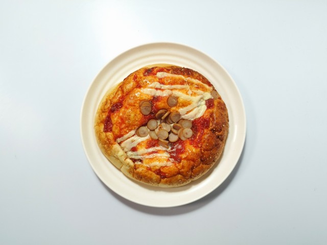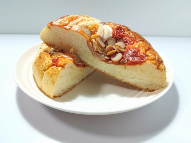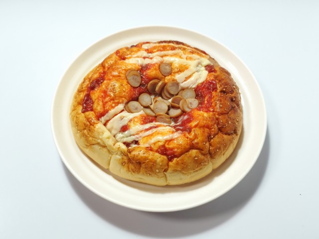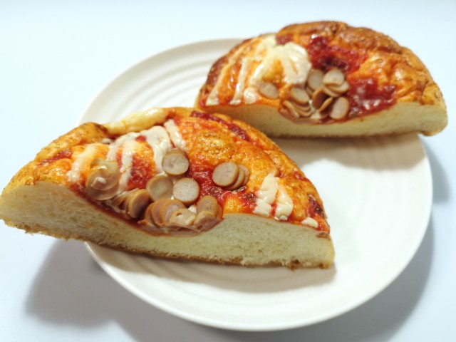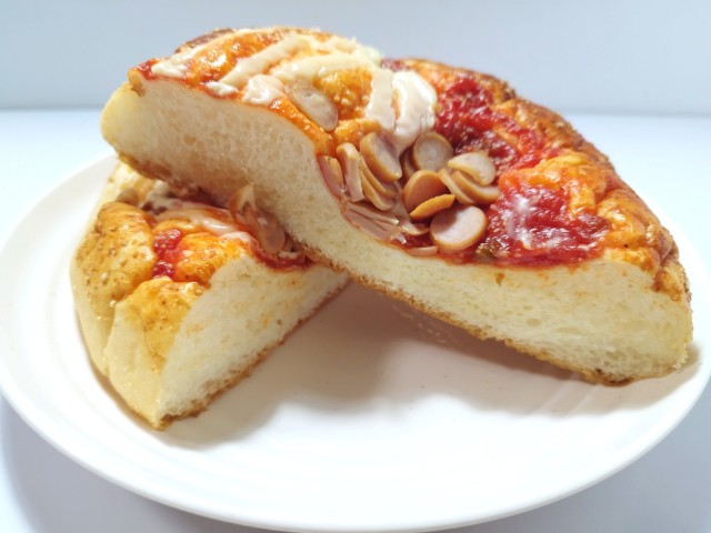 ふんわりとした生地にピザソースと粉チーズ、チーズソース、輪切りソーセージをトッピングして焼き上げた、ボリュームのある惣菜パンです。
