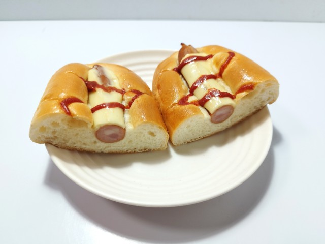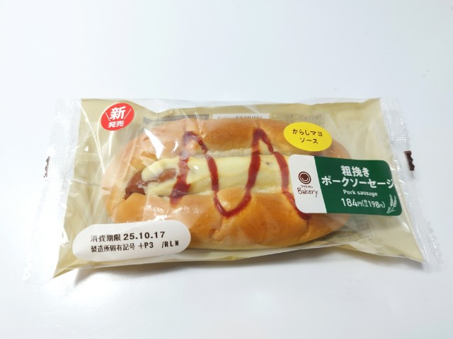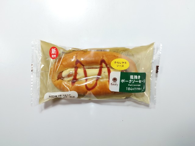 粗挽きポークソーセージケチャップからしマヨソースがのった惣菜パンです。ファミリーマートのソーセージがのった同じような惣菜パンとしては、ジューシーソーセージパン(2025年8月5日発売)がありましたが、こちらは粗挽きポークソーセージになっていて、ケチャップが追加かれています。そんな粗挽きポークソーセージですが、生地ふんわりとした食感小麦の風味で、間違いのない美味しさです。粗挽きポークソーセージ肉の旨味パリッとした食感で、生地との相性抜群です。ポイントはやはりケチャップからしマヨソースで、ケチャップの酸味からしマヨソースのほのかな酸味で、さらに美味しくなっています。大きさは普通の惣菜パンくらいで、おやつ小腹が空いた時にピッタリです。ぜひ粗挽きポークソーセージを食べてみて下さい。
