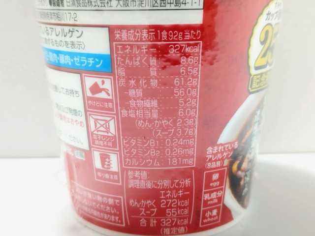 熱量:327kcal、たんぱく質:8.6g、脂質:6.5g、炭水化物:61.2g(糖質:56.0g、食物繊維:5.2g)、食塩相当量:6g