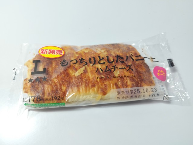 ローソンの商品「もっちりとしたパニーニ ハムチーズ」を食べてみました。