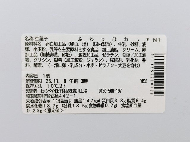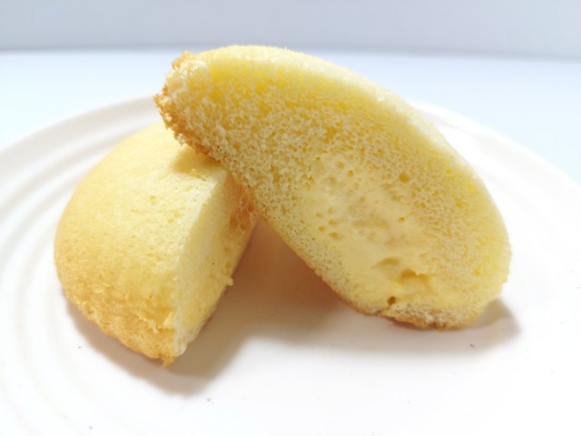 たまごクリームが入ったカステラです。見つけた瞬間に手に取ってしまった商品で、個人的には楽しみにしていた新商品の一つでもあります。そんなふわっほわっですが、ふんわりとした生地しっとりとした食感たまごの風味ほどよい甘味で、美味しいのひと言です。中にはたまごクリームが入っていて、なめらかな食感濃厚なカスタードの味わいで、生地との相性抜群です。甘味はしっかりとありつつも、くちどけの良さもあって、あっさりと食べられます。大きさは手のひらサイズよりやや大きいくらいで、おやつ小腹が空いた時にピッタリです。ぜひふわっほわっを食べてみて下さい。