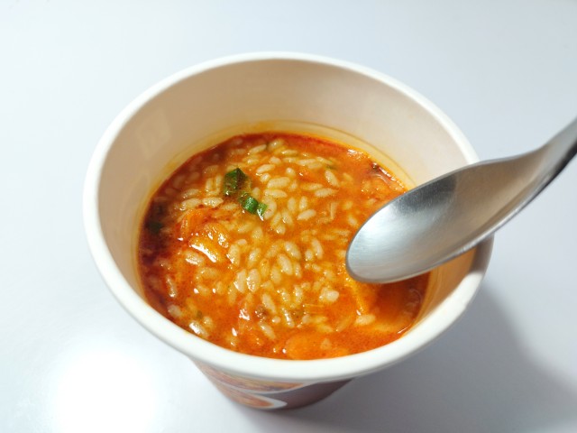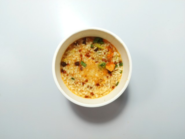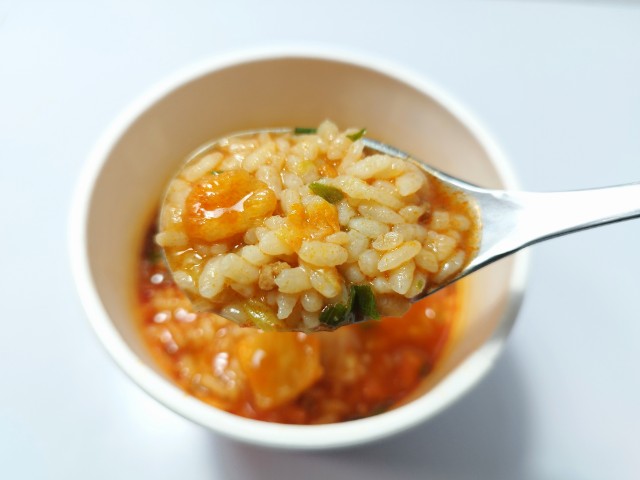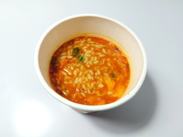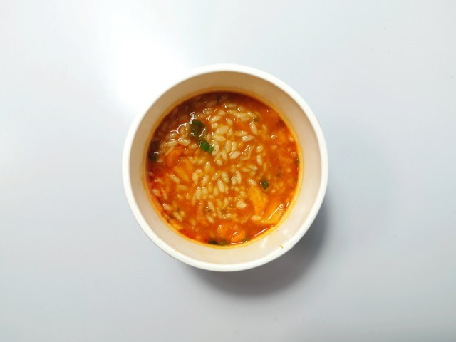 すみれメシの味噌キムチです。すみれカップ麺発売の25周年を記念して作られたカップ飯です。ちなみに味噌キムチは中の島本店限定の味で、その味が今回はカップ飯として出ています。そんなすみれメシですが、スープは味噌の濃厚な味わいとラードのコク、キムチの旨味があって、クセになってしまう美味しさです。ご飯はスープをしっかりと吸っていて、ひと口食べるごとに旨味が溢れてきます。具材には味付肉そぼろやキャベツ、白菜キムチなどが入っていて、それぞれの味や食感を楽しめます。内容量は一人分にちょうどよく、小腹が空いた時や今回同時発売された7プレミアム すみれ 醤油(2025年11月4日発売)に合わせるのも面白いと思います。ぜひすみれメシの味噌キムチを食べてみて下さい。