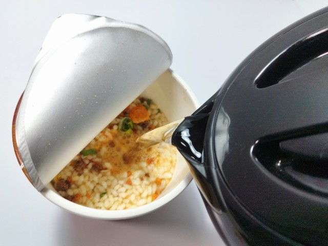 お湯を入れて、フタをして5分待ちます。
