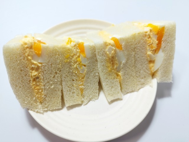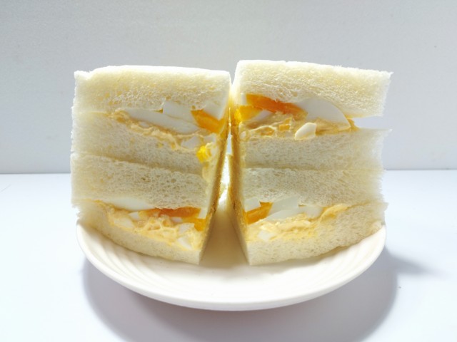 タルタルたまごサラダとゆでたまごを組み合わせた、パンが厚くておいしいサンドイッチです。