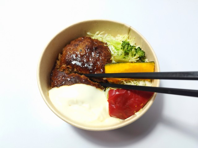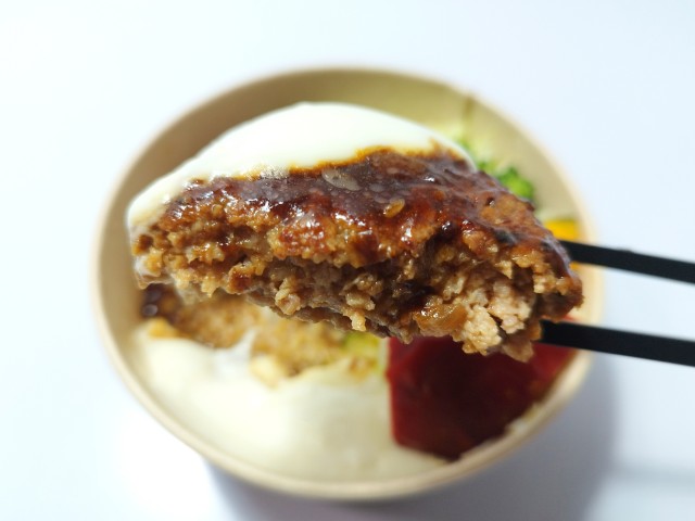 ローソンの今週の新商品「まちかど厨房 とろ〜りチーズソースのハンバーグ丼」を食べてみました。