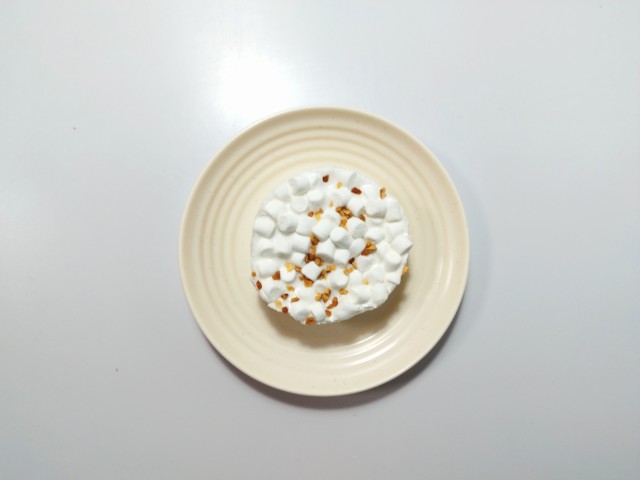 パンケーキの上にマシュマロとマシュマロソースをトッピングし、レンジで温めることでソースが溶け出すふわとろしっとり食感のマシュマロパンケーキです。