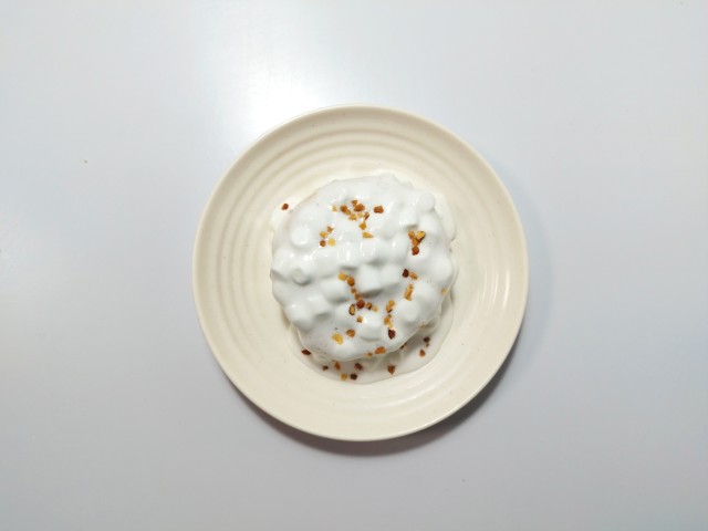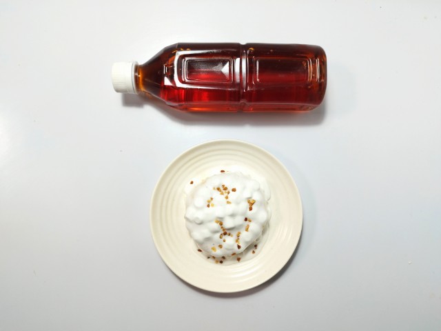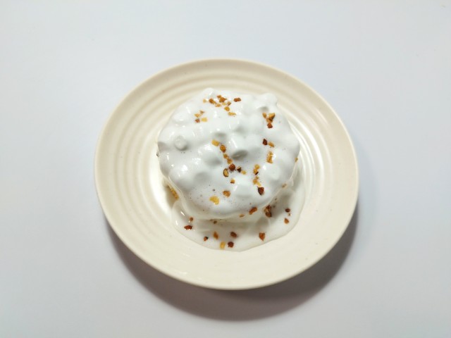 底のある紙カップと側面の巻紙を外して、皿にのせたらラップをせずに温めます。