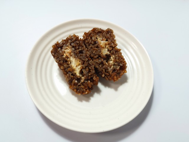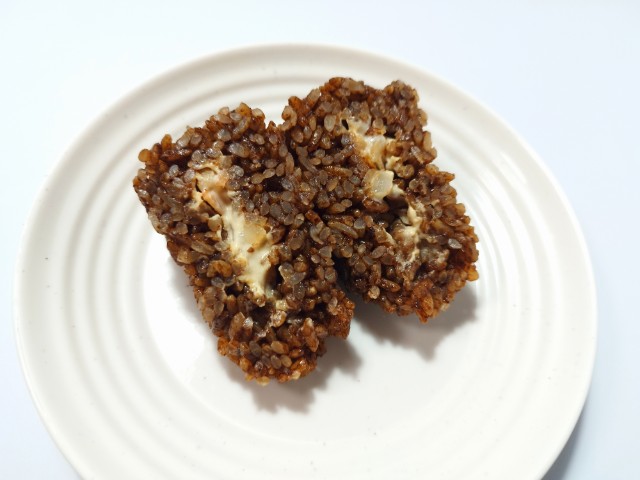 えびめしおむすびです。セブンイレブンでは11月4日からご当地食材&なじみのある地域メニューを各地区で発売する地域フェア「全国11エリアで開催!うまいもの決定戦」を開催していて、各地域ならではのご当地代表商品が発売されています。また、今回は「地元以外の人気商品も試してみたい」との声に応えて、各地域から選抜した全国選抜商品も発売しているそうです。ちなみに今回の商品は全国選抜商品の一つになっています。そんなえびめしおむすびですが、特製ソースで炒められたご飯ソースの旨味香ばしい味わいがあって、クセになってしまう美味しさです。中具に海老マヨネーズが入っていて、海老の風味マヨネーズの酸味で、ご飯ともよく合います。また、パッケージに書かれている温めておいしいの言葉通り、温める事でソースの風味がアップするので、余裕があれば温めて食べる事をオススメします。大きさは普通のおむすびサイズで、小腹が空いた時主食にあと一品追加したい時にピッタリです。ぜひえびめしおむすびを食べてみて下さい。