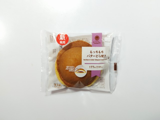 ファミリーマートの商品「もっちもちバターどら焼き」を食べてみました。
