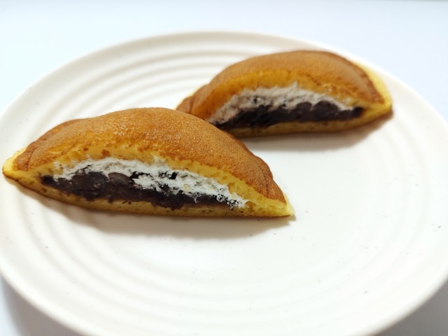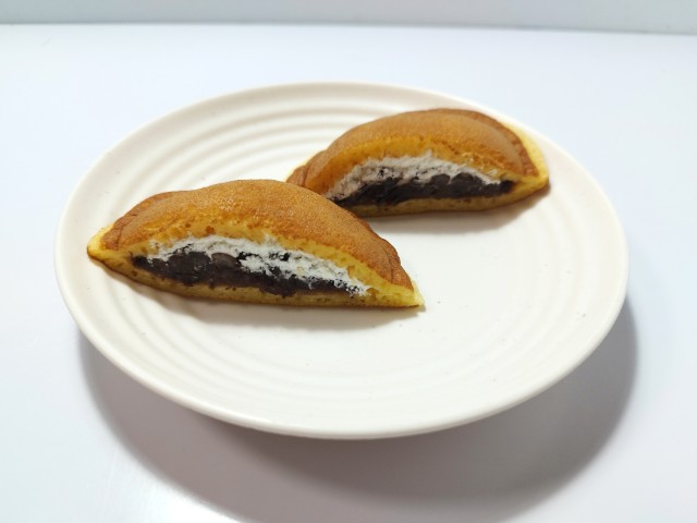 もっちもち食感の生地にバター風味が特徴のホイップクリームと北海道産小豆を使用したつぶあんを挟んだどら焼きです。