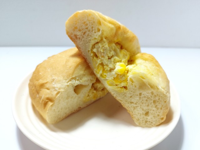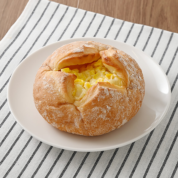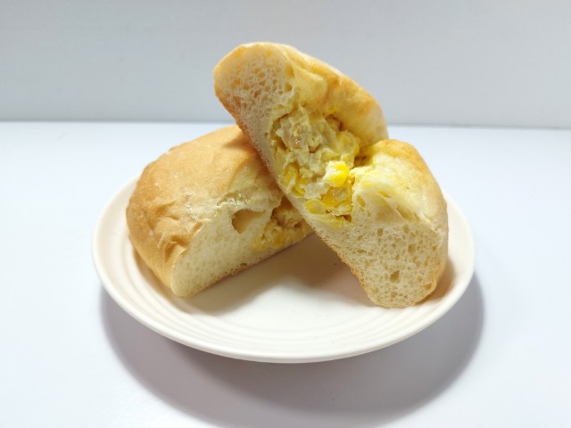 フランスパン生地にコーンマヨを包み、香ばしく焼き上げた惣菜パンです。