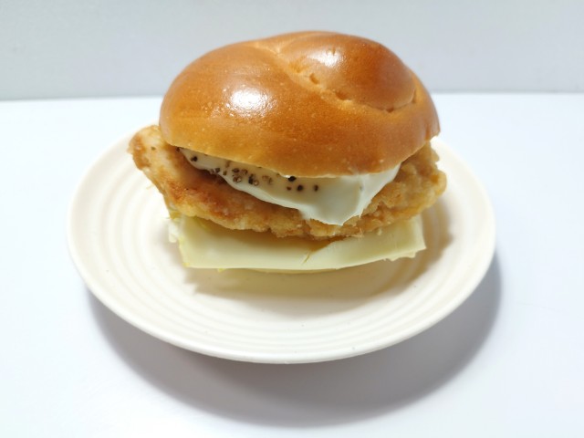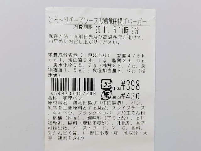 ローソンの商品「まちかど厨房 とろ〜りチーズソースの鶏竜田揚げバーガー」を食べてみました。