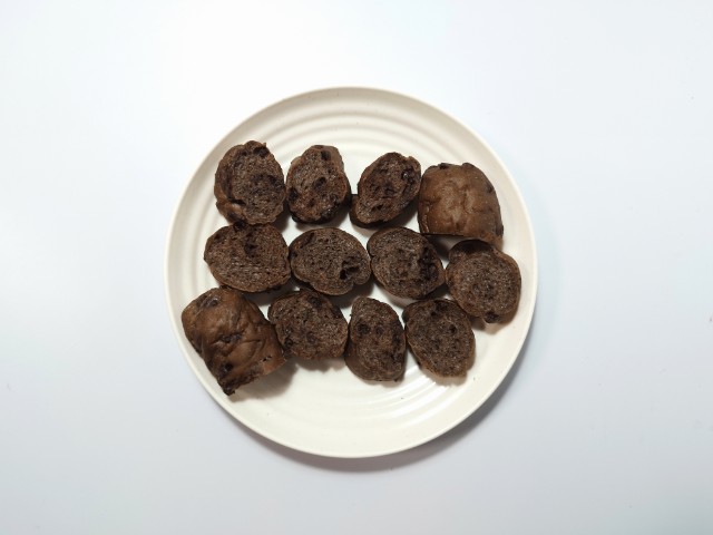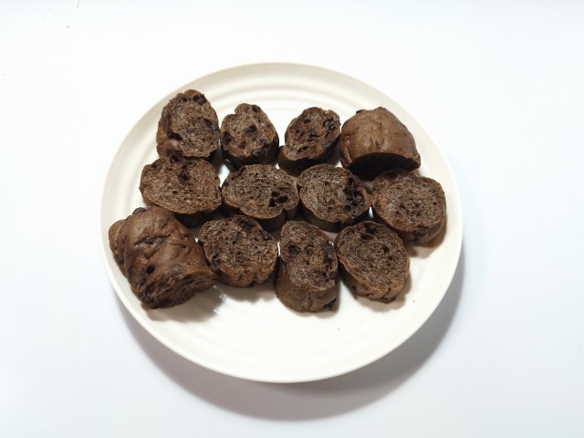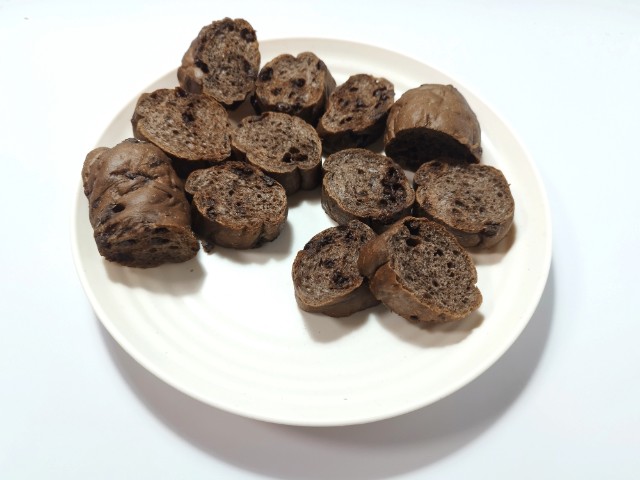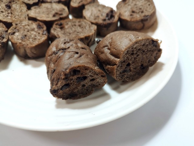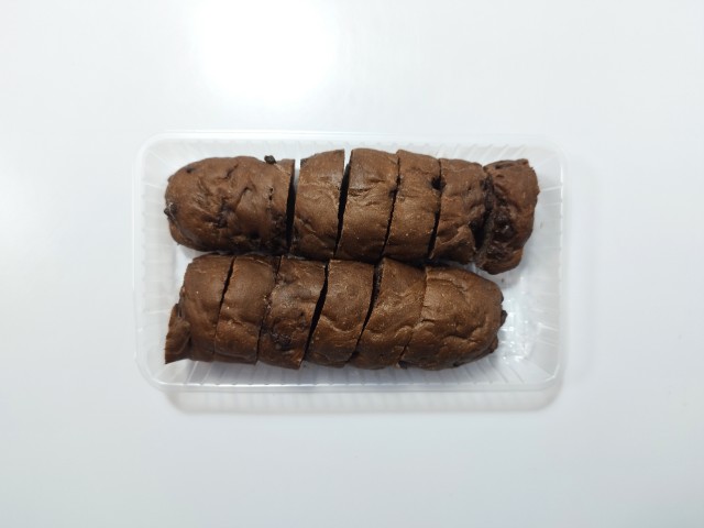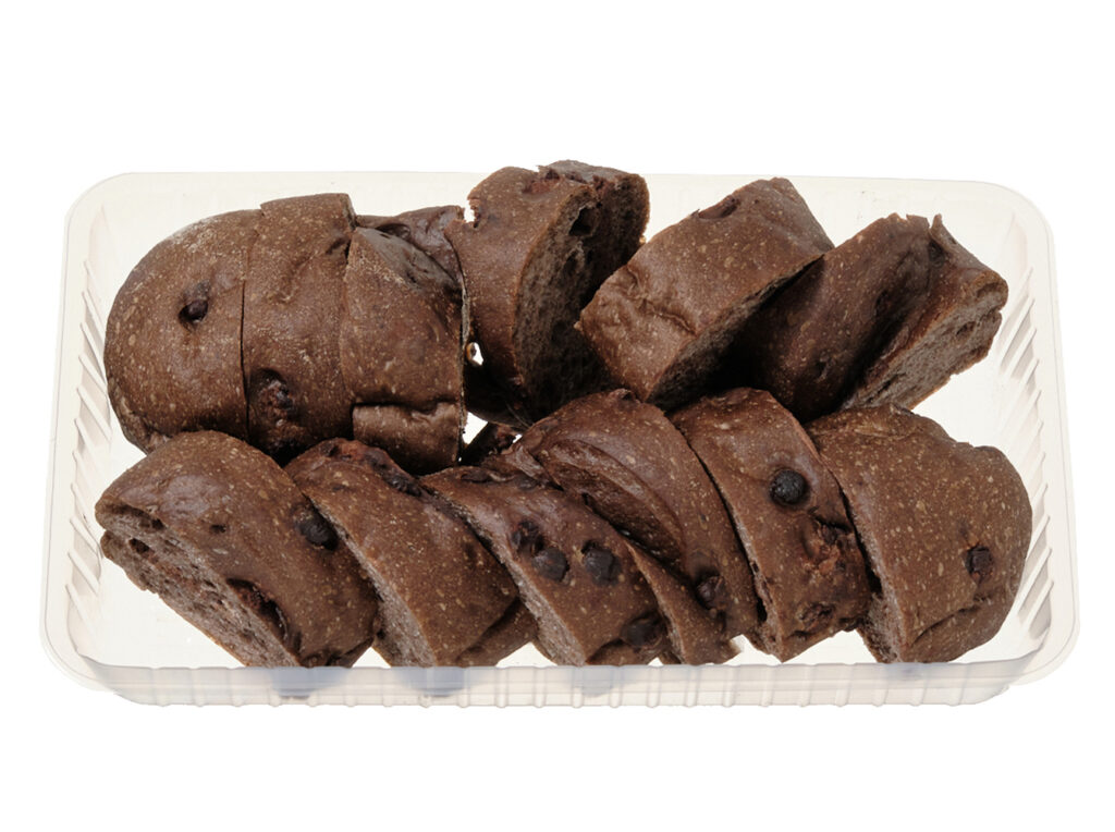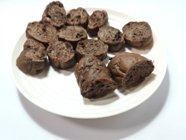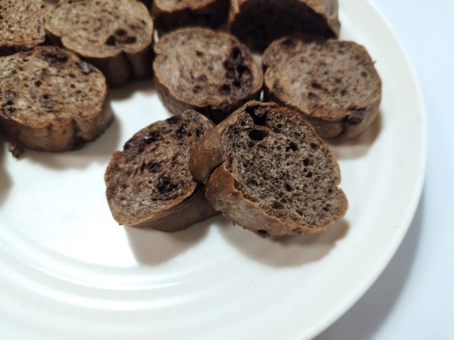 チョコ風味のフランスパン生地を香ばしく焼き上げ、12切にカットしました。