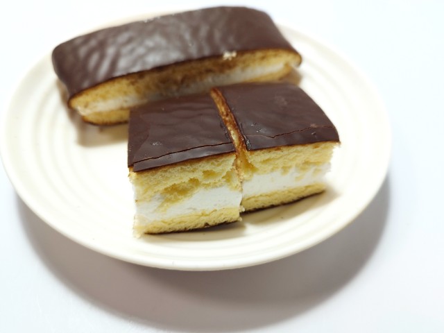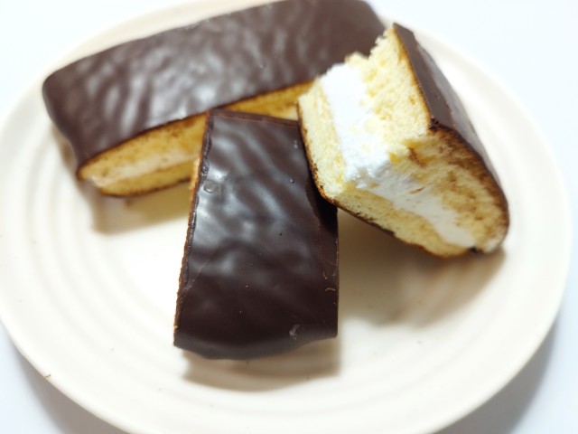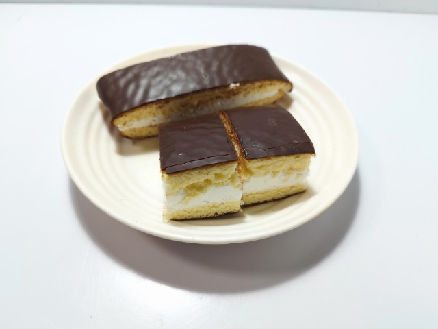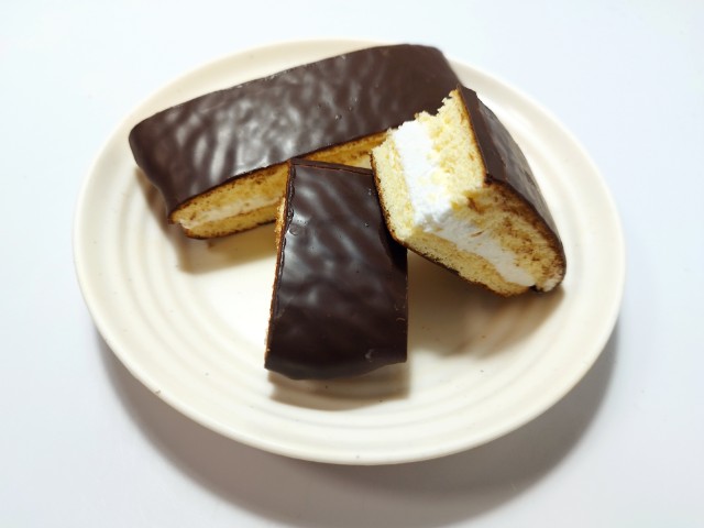 バニラクリームを挟んだチョコサンドです。チョココーティングされた見た目にも美味しいチョコサンドで、見つけた瞬間に手に取ってしまいました。そんなちょこさんどですが、生地はふんわりとした食感とほどよい甘味、くちどけの良さで、間違いのない美味しさです。チョココーティングはパリパリとした食感はないものの、チョコの甘味があって、味のアクセントになっています。バニラクリームはなめらかな食感とバニラの風味で、スポンジ生地とのバランスも良いです。全体的には甘味のあるチョコサンドですが、甘ったるさが残らないので、甘いのがちょっと苦手な方にも食べやすいと思います。2本入ですが、1本はふた口サイズくらいなので、一人でも普通に食べ切れます。ぜひちょこさんどを食べてみて下さい。
