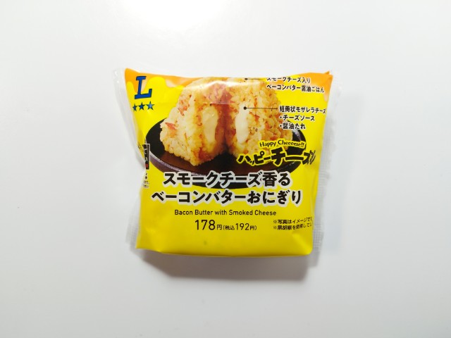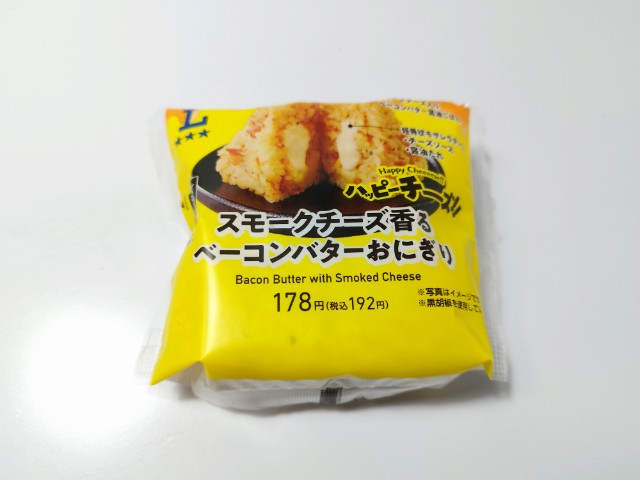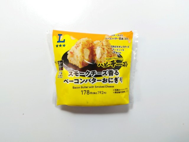ローソンの商品「スモークチーズ香るベーコンバターおにぎり」を食べてみました。