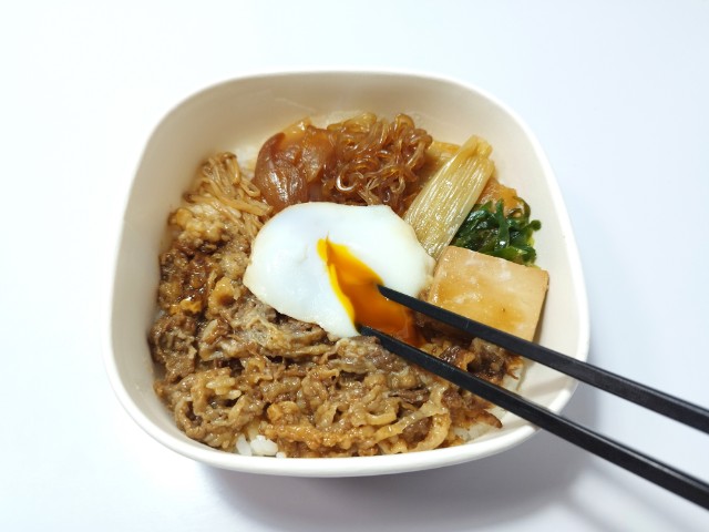 セブンイレブンの商品「ちいかわのハフハフすき焼き丼」を食べてみました。