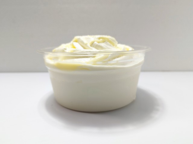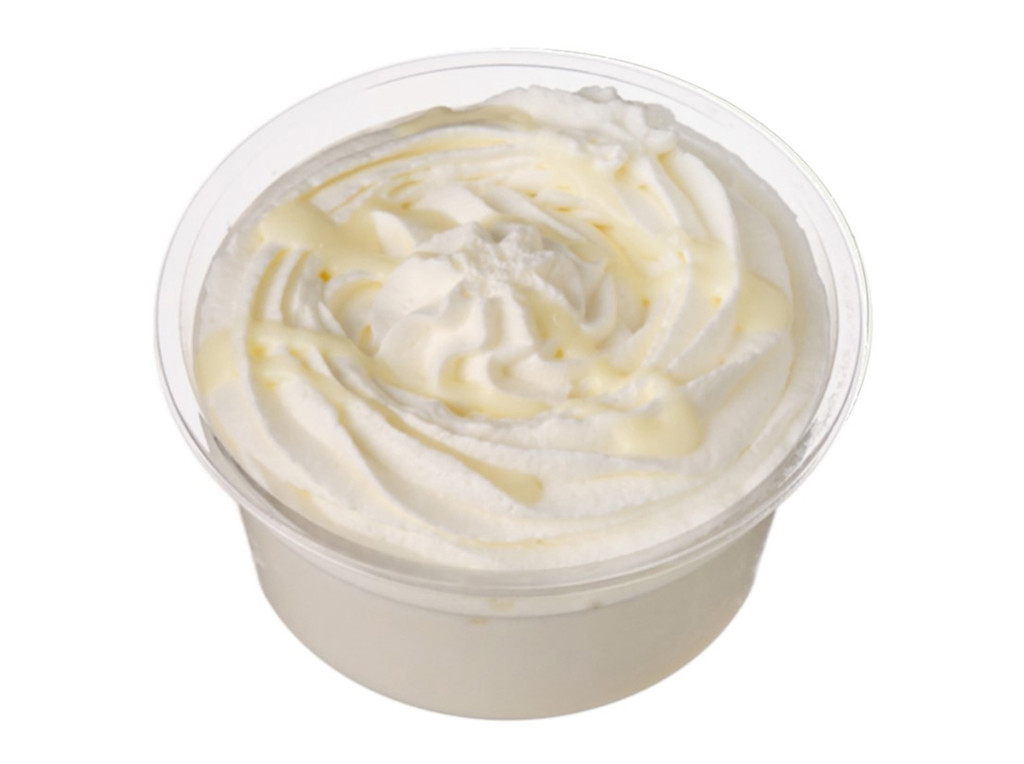 練乳を加え、ミルクの風味をしっかり感じられるミルクプリンに、ホイップクリームをたっぷり絞ったドカ盛りスイーツ。追い練乳ソースでさらなる背徳を感じる仕立てです。