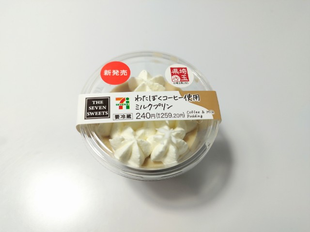 わたぼくコーヒーを使ったコーヒーミルクプリンです。ちなみにわたぼくをネットで調べたところ、埼玉県東部を中心に学校給食にも採用されている森乳業が展開するブランドで、牛乳が苦手な子供に美味しく栄養を摂ってもらいたいと学校給食の栄養士さんと協力して開発されたわたしとぼくのコーヒーミルクが、子供たちの間でわたぼくと親しまれて呼ばれた事で、今回のWATABOKU(わたぼく)が誕生したみたいです。とだいぶ長くなったので、最後はかなり省略しました。そんなコーヒーミルクプリンですが、ホイップクリームはなめらかな食感とくちどけの良さで、安定の美味しさです。コーヒーミルクプリンはプルンとした食感とコーヒーの味わい、ミルクの風味で、食べ出すと止まらなくなる美味しさです。コーヒー牛乳のプリンといった感じなので、老若男女問わず、親しみのある味わいだと思います。大きさは普通のカップスイーツくらいで、おやつや食後のデザートにピッタリです。ぜひわたぼくコーヒー使用ミルクプリンを食べてみて下さい。