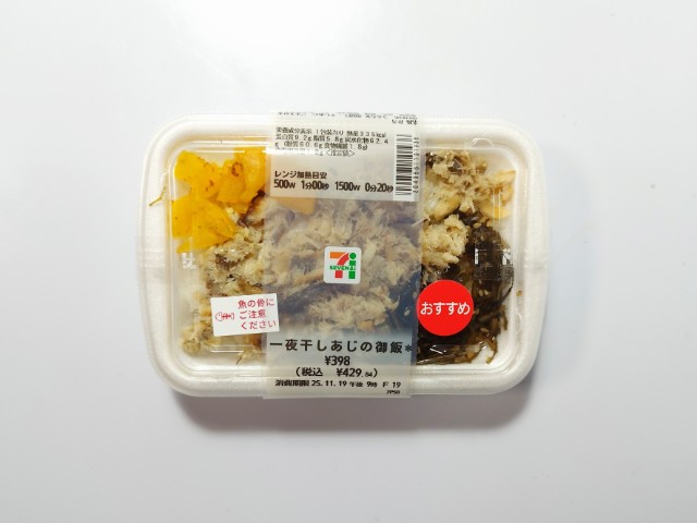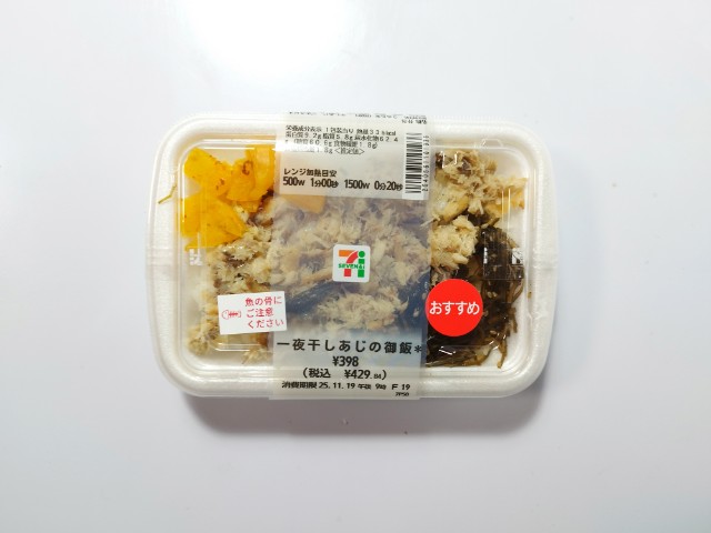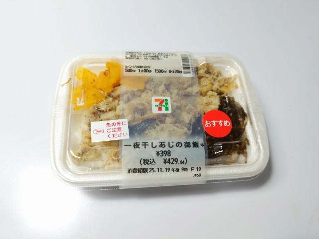 セブンイレブンの今週の新商品「一夜干しあじの御飯」を食べてみました。