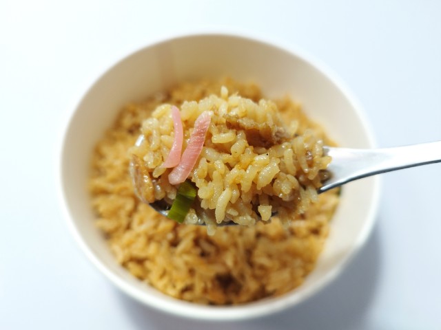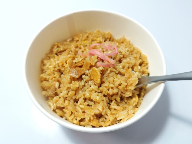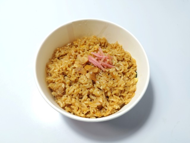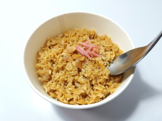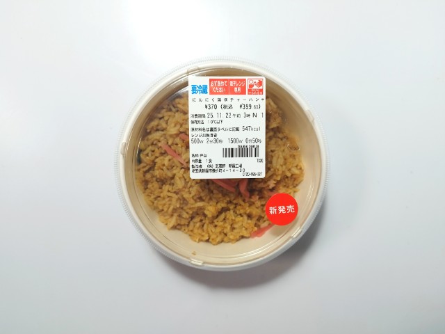 にんにくチャーハンです。シンプルな見た目ながら、その商品名と価格に惹かれて買ってみました。そんなにんにく無双チャーハンですが、チャーハンパラパラとした食感醤油の風味にんにくの味わいがあって、食べ出すと止まらなくなる美味しさです。特ににんにく無双というだけあって、しっかりとその香りと味わいを楽しむ事が出来ます。また、チャーハンには豚肉ねぎたまごといった具材が混ぜ込まれているので、チャーハンの美味しさもしっかりと楽しめます。トッピングにはガーリックチップ紅生姜がのっていて、味や食感のアクセントになっています。シンプルなにんにくチャーハンなので、他の惣菜と合わせたり、アレンジもしやすいと思います。内容量は1食分にちょうどよく、お腹も満たされます。ぜひにんにく無双チャーハンを食べてみて下さい。