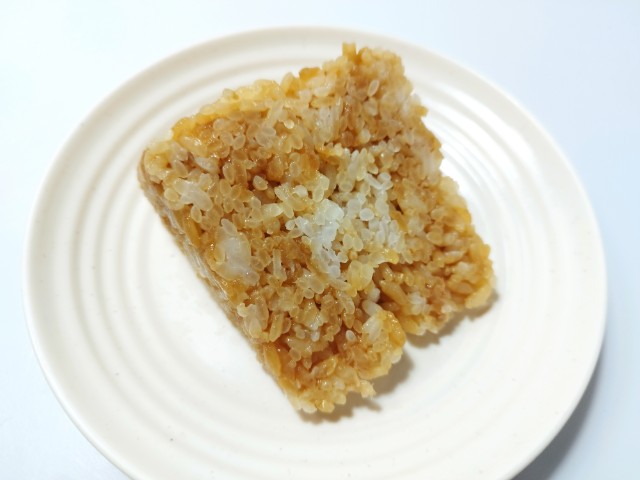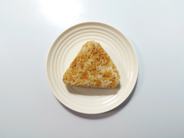 鮭のほぐし身バター風味の醤油タレを使ったおおきなおむすびです。おおきなおむすびにも興味をそそられますが、個人的にはしゃけバターの味わいが楽しみで買ってみました。そんなおむすびですが、ご飯だしの旨味バター醤油の風味があって、安定の美味しさです。ポイントは鮭のほぐし身が混ぜ込まれている事で、バター醤油だけだと単調になりそうなおむすび鮭の風味が加わる事で、また違った味わいを楽しむ事が出来ます。パッケージに書かれている温めておいしいの言葉通り、温める事でバター醤油の香りがアップするので、余裕があれば温めて食べる事をオススメします。大きさは普通のおむすびよりもやや大きめなので、このおむすび1個でお腹も軽く満たされると思います。ぜひしゃけバターおおきなおむすびを食べてみて下さい。