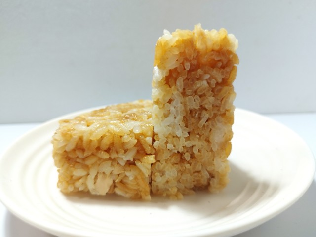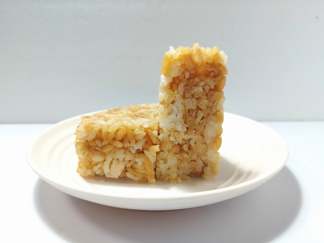昆布だしで炊いた御飯に、ほぐしたしゃけとバター風味の醤油タレを混ぜ込んだ風味豊かな味わいのおむすびです。