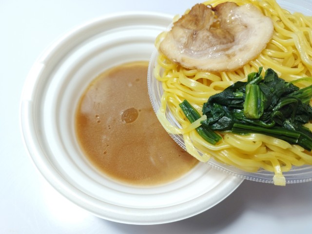セパレートタイプなので、麺と具材をスープに入れます。