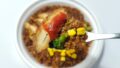 豚骨めしとペペロンチーノの上に、唐揚げとチーズソース,背脂マヨを盛り付けた背徳感のある逸品です。