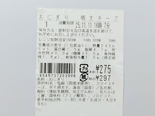 ローソンの商品「まちかど厨房 おにぎり 明太チーズ」を食べてみました。