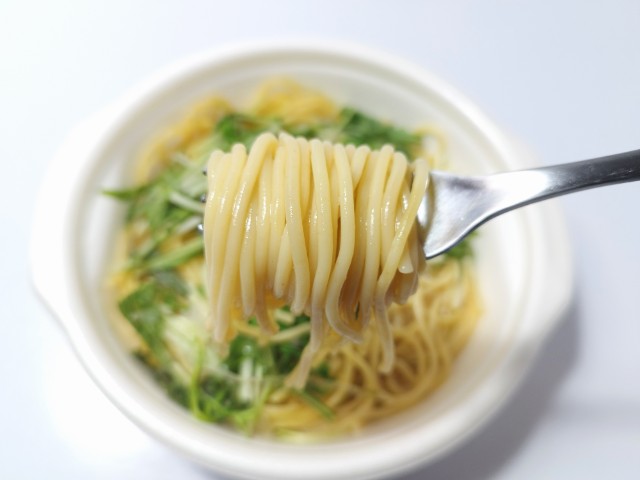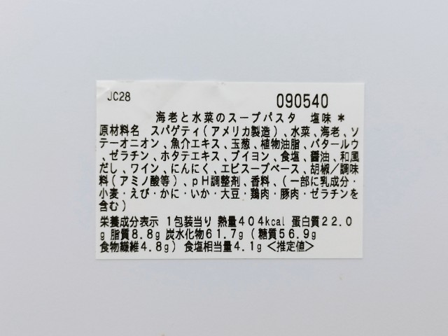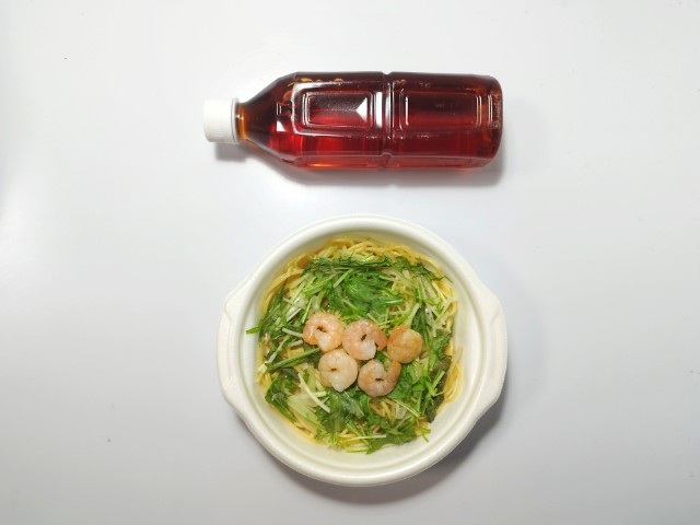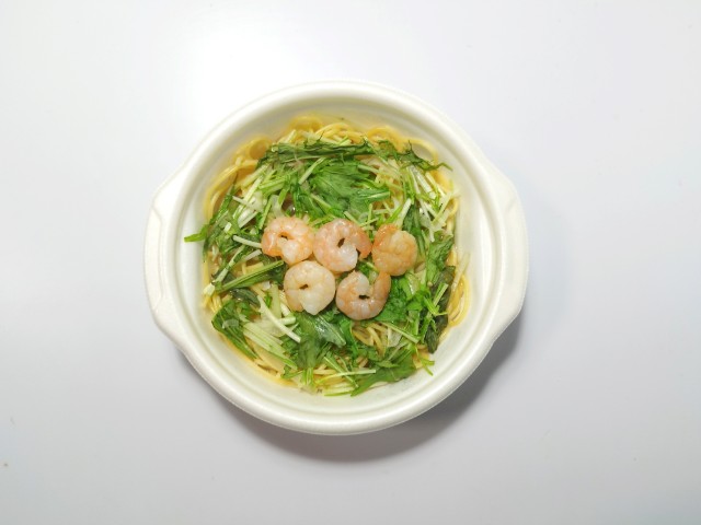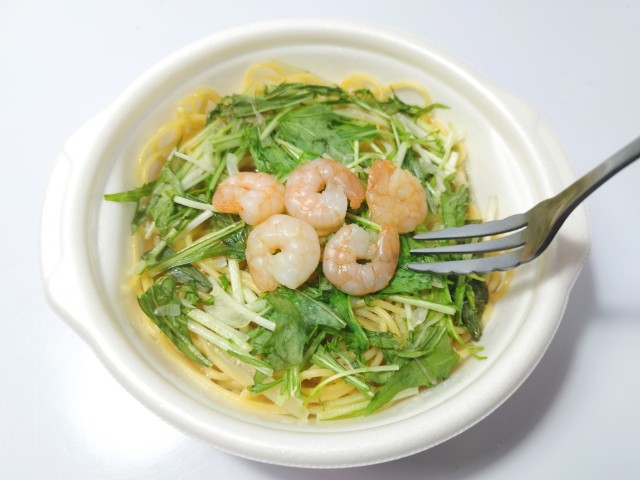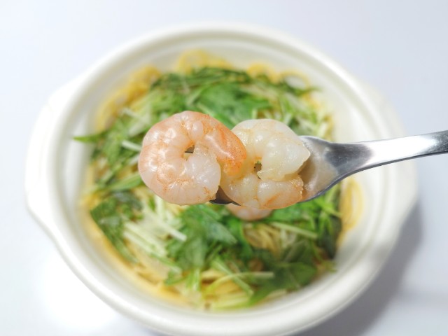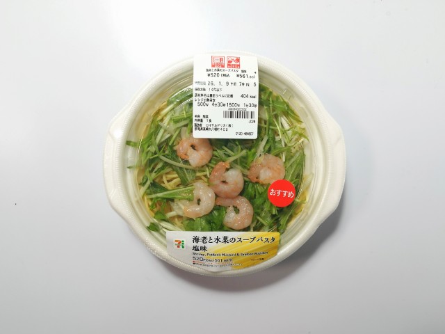 セブンイレブンの今週の新商品「海老と水菜のスープパスタ 塩味」を食べてみました。