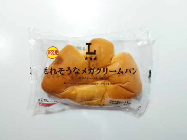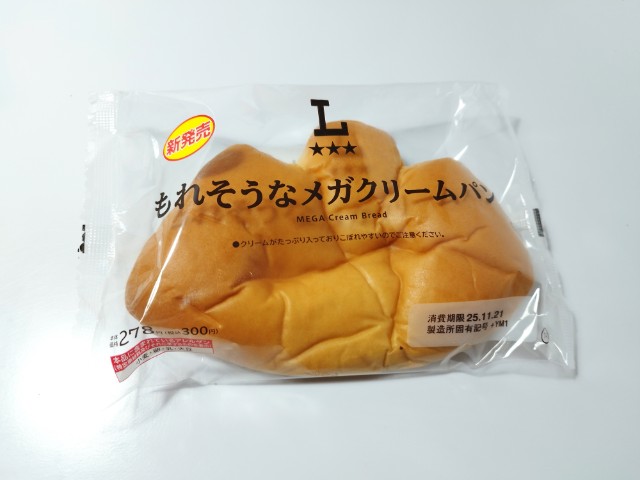 ローソンの商品「もれそうなメガクリームパン」を食べてみました。