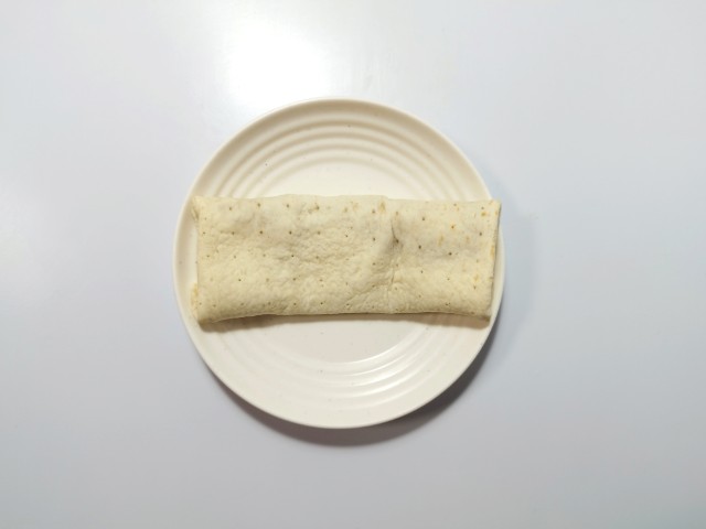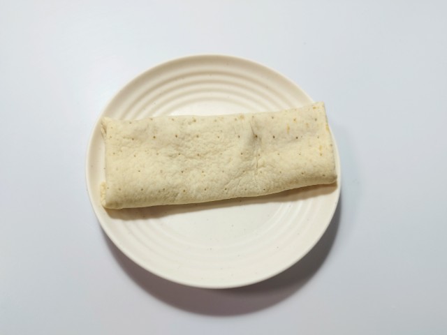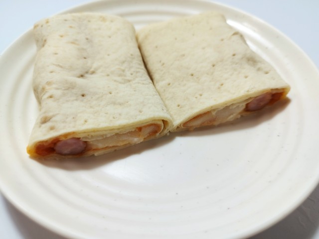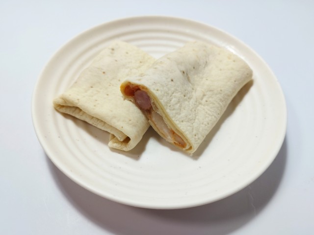 ソーセージと甘辛ソース、おもちが入ったブリトーです。ソーセージとおもちを交互に串刺しにして焼いたり揚げたりして、甘辛いソースを絡めた韓国の屋台で人気の「ソトクソトク」をイメージしているらしく、その味が気になって買ってみました。そんなブリトーですが、トルティーヤ生地はもちもちとした食感と歯切れの良さで、安定の美味しさです。ソーセージは皮はパリッと中はジューシーで、食べ応え抜群です。おもちはもっちりとした食感で、ソーセージとのバランスも良いです。ポイントはやはり甘辛ソースで、醤の辛味とほのかな甘味が加わる事で、一気に韓国風へと変わります。一見するとバラバラに見える組み合わせですが、全体的に味と食感が上手くまとまっていて、やみつきになる味わいのブリトーになっていると思います。大きさは小腹を満たすにはちょうど良いサイズで、おやつや主食にあと一品追加したい時にもピッタリです。ぜひ韓国風ソーセージ&もちのブリトーを食べてみて下さい。