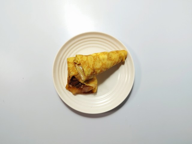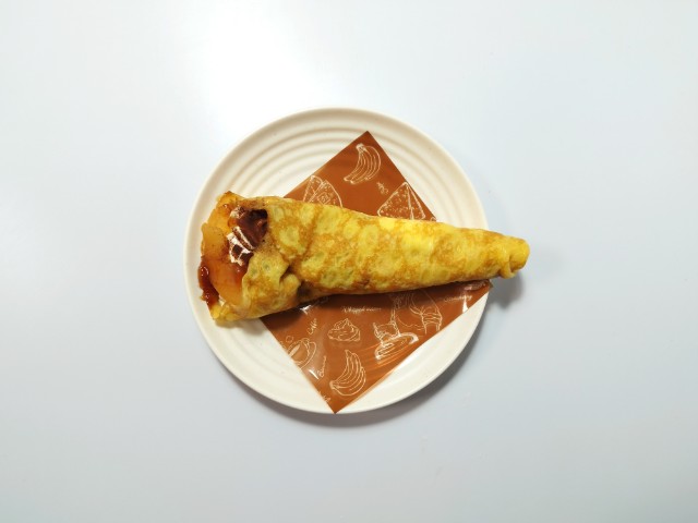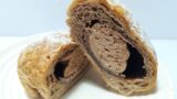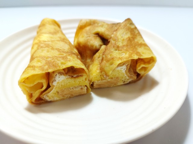 焼きりんごミルフィーユクレープです。焼きりんごやミルフィーユの言葉に惹かれて買ってみました。そんなクレープですが、クレープ生地はしっとりした食感とたまごの風味で、間違いのない美味しさです。中には焼きりんごやカラメルソース、ホイップクリーム、スポンジ生地、りんごカスタード、パイ生地が入っていて、焼きりんごはりんごの甘味とシナモンの風味、カラメルソースは香ばしい味わいを楽しめます。ホイップクリームはふんわりとした食感とミルクの風味、スポンジ生地はなめらかな味わいとほどよい甘味で生地とのバランスも良いです。りんごカスタードはねっとりとした食感とりんごの風味、パイ生地はサクサクとした食感で、最後のひと口まで飽きることなく食べられます。大きさは一人分にちょうどよく、おやつや小腹が空いた時にピッタリです。ぜひ焼きりんごミルフィーユクレープを食べてみて下さい。