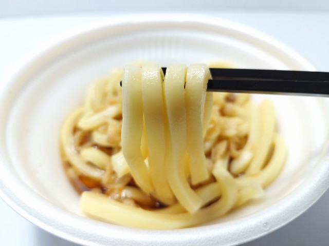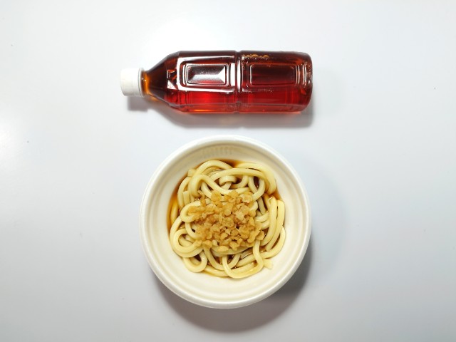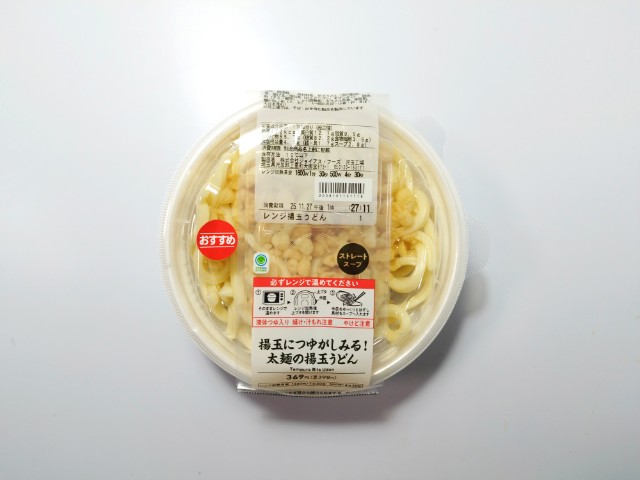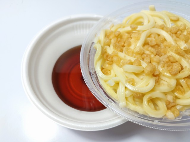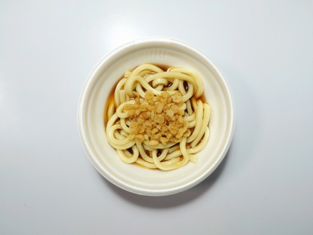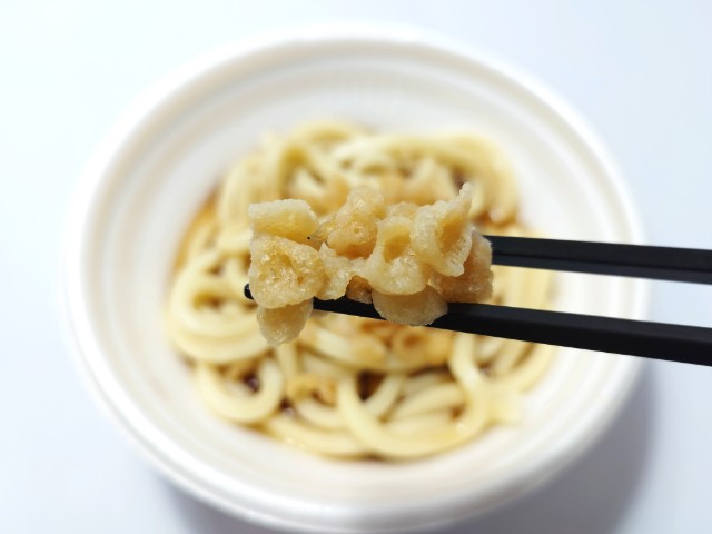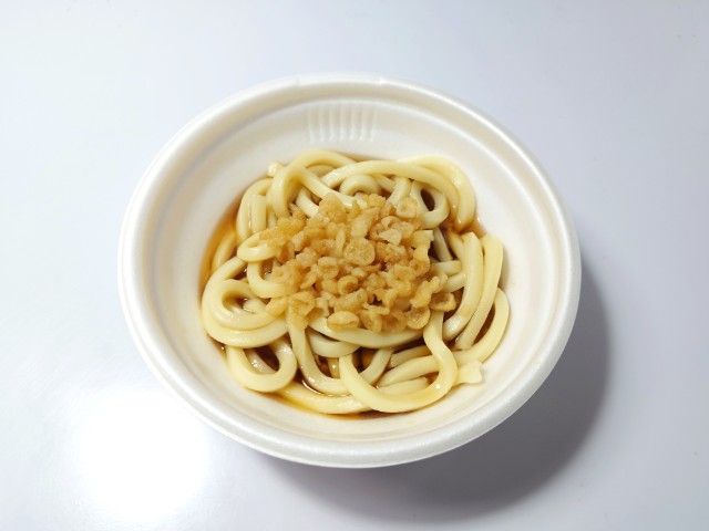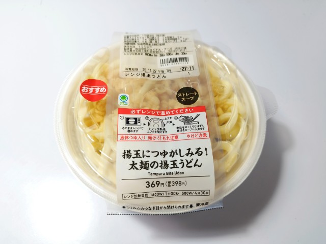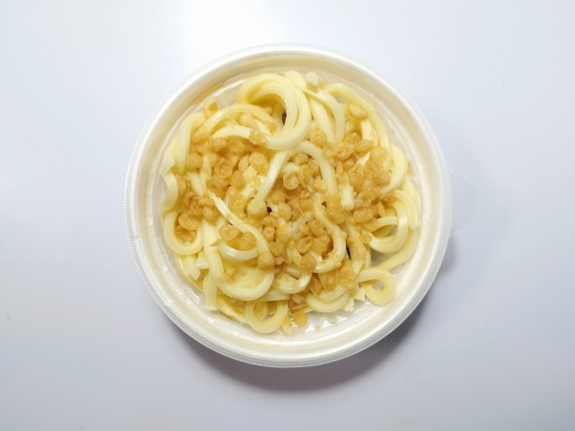 ファミリーマートの今週の新商品「【関東の一部】揚玉につゆがしみる!太麺の揚玉うどん」を食べてみました。