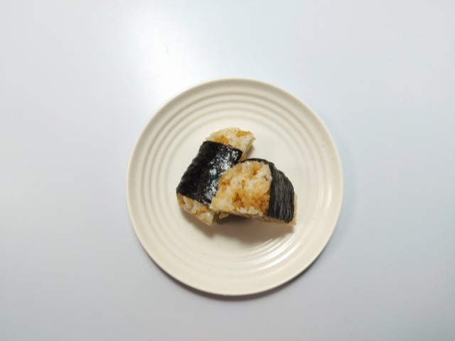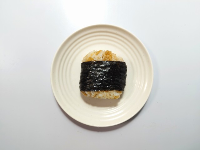 にんにく醤油の豚肉めしの直巻おむすびを美味しくいただきますっ!!