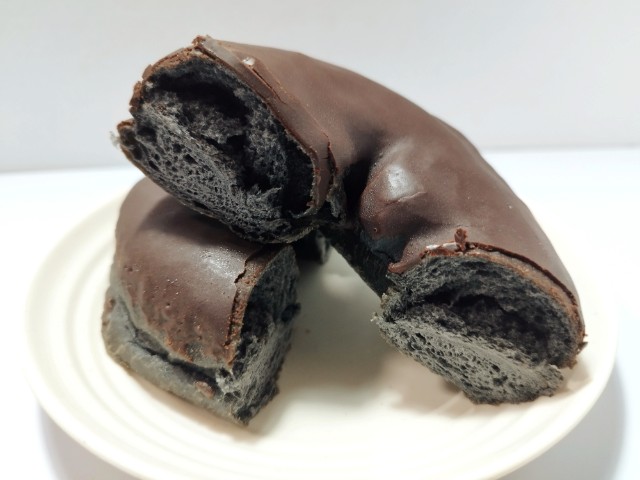 ふんわりもっちりとした黒いドーナツ生地にチョコレートコーチングを掛けたドーナツです。