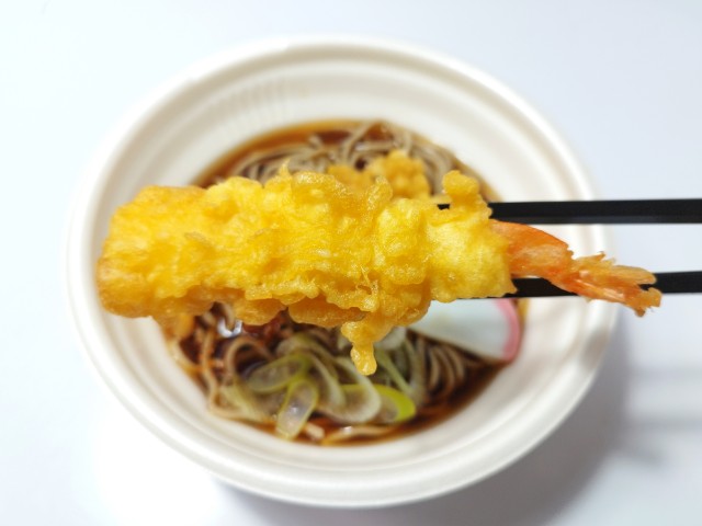 ファミリーマートの今週の新商品「冬の定番 海老天そば」を食べてみました。
