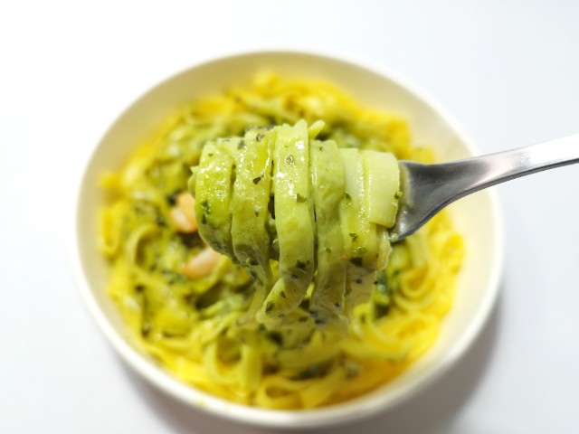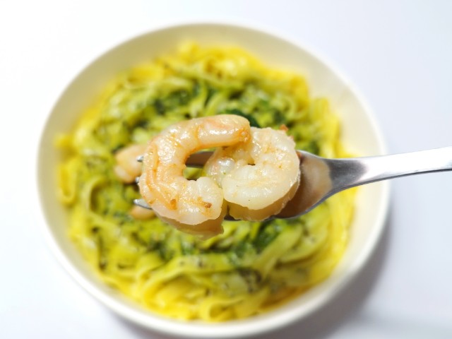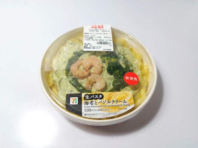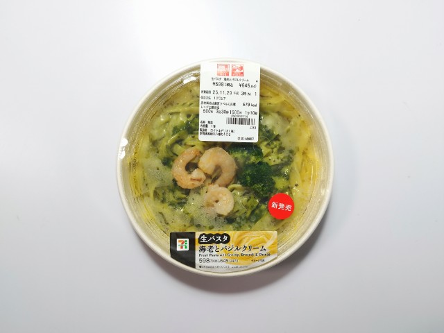 セブンイレブンの今週の新商品「生パスタ 海老とバジルクリーム」を食べてみました。
