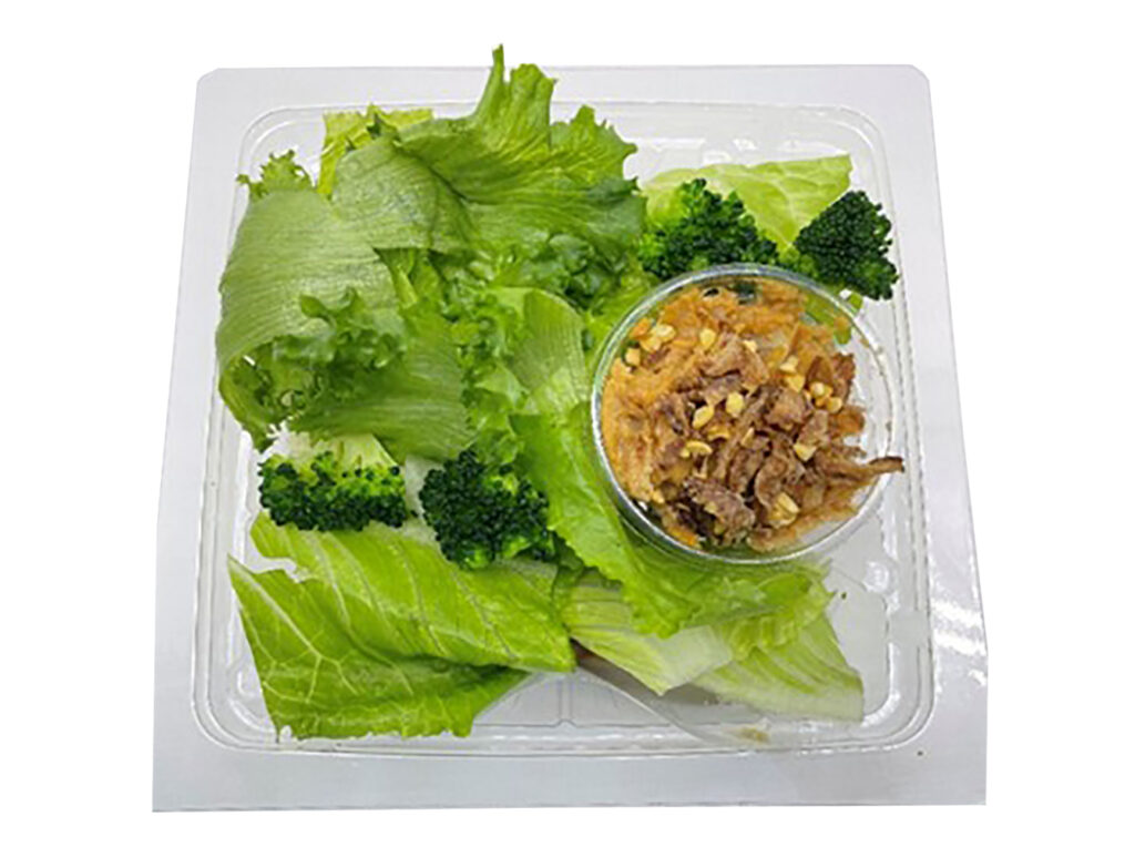 ちいかわが頑張って草をむしっている様子をイメージした商品。3種の野菜、オニオンポテトなどが入ったサラダです。
