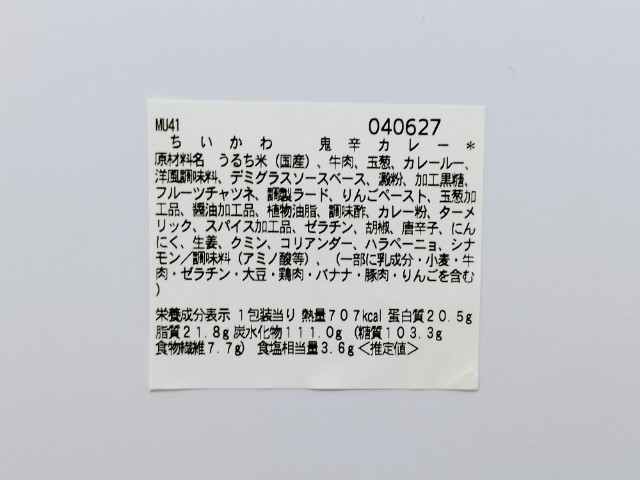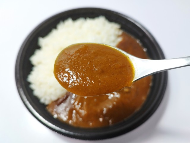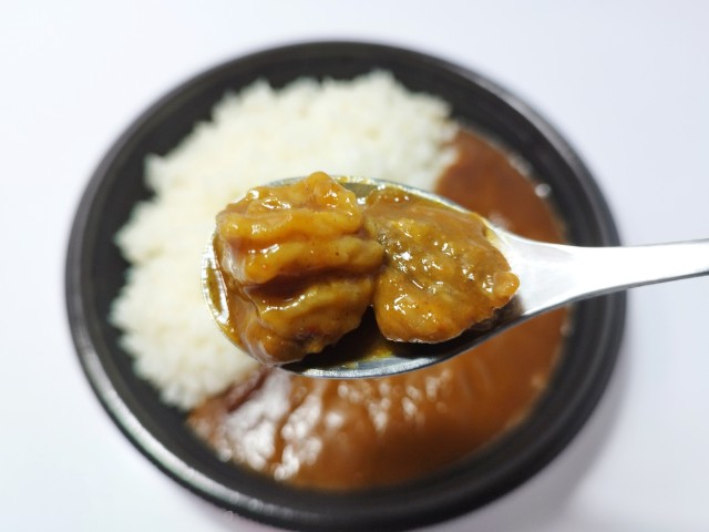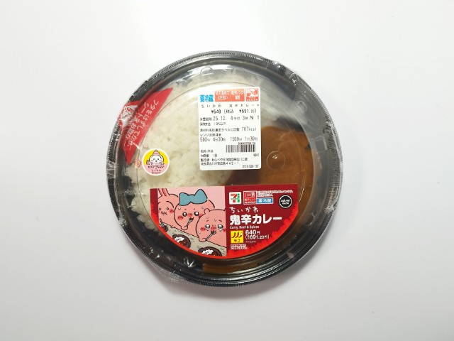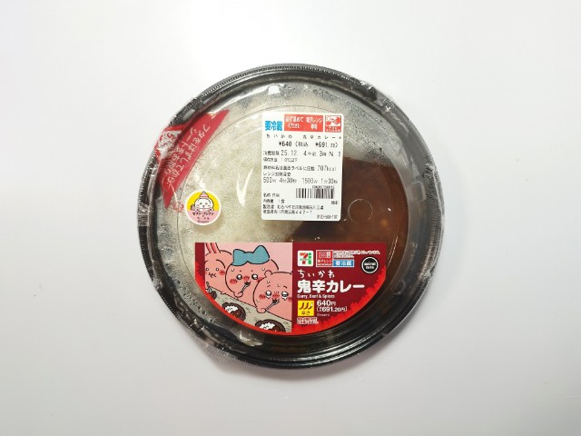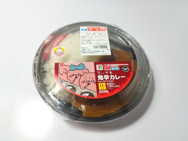 鬼辛カレーです。セブンイレブンでは昨年の「セブンイレブン×ちいかわ あったまるね、きもち」キャンペーン(2024年12月3日~25日)に続き、今年も「ちいかわと冬をたのしんじゃお!」キャンペーンを12月2日より開催していて、今回の商品もその対象商品の一つとなっています。そんな鬼辛カレーですが、カレーソースはなめらかな味わいとスパイスの風味、唐辛子の辛味があって、ハマってしまう美味しさです。具材にはゴロっとした牛肉が入っていて、牛の旨味と柔らかくジューシーな肉質で、美味しいのひと言です。辛味においてはカレーの粘度の高さから、辛さがずっと口の中に残り続けるので、想像している以上に辛く感じると思います。辛味以外では美味しいカレーですが、辛いのが苦手な方は止めておいた方が無難です。内容量は1食分にちょうどよく、お腹も満たされます。ぜひ鬼辛カレーを食べてみて下さい。