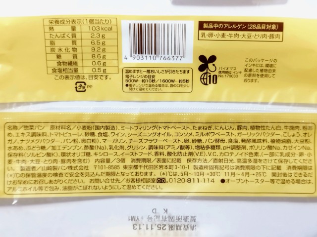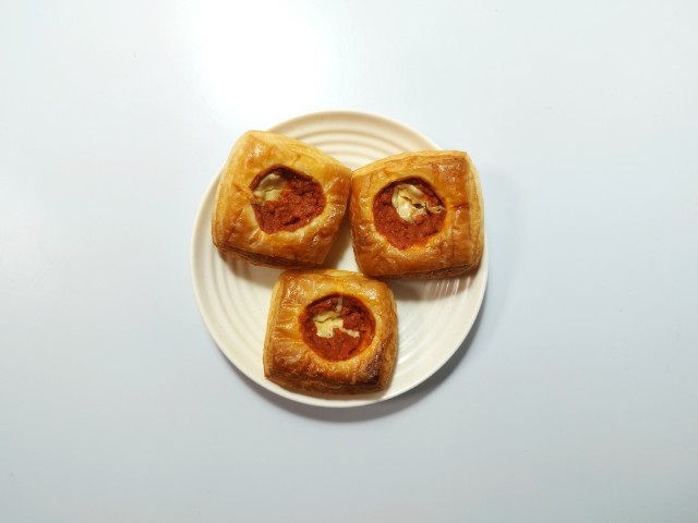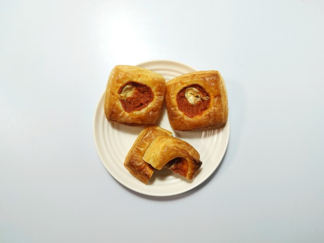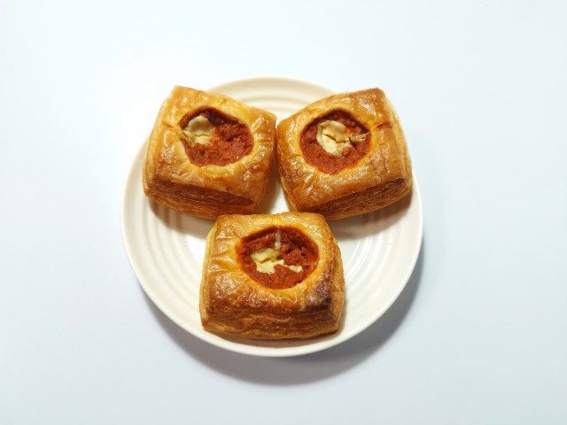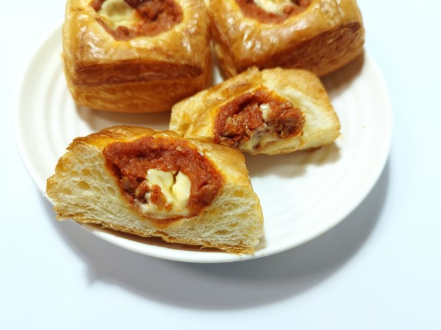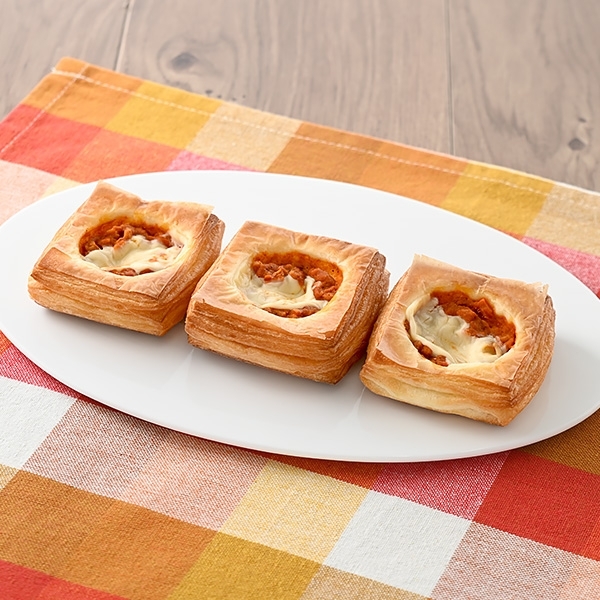 デニッシュ生地にミートフィリングとチーズソースをトッピングした、ミニサイズの惣菜パン3個入りです。