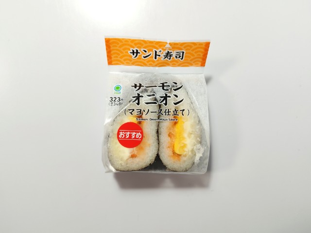 ファミリーマートの商品「サンド寿司 サーモンオニオン マヨソース仕立て」を食べてみました。