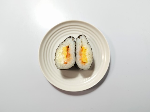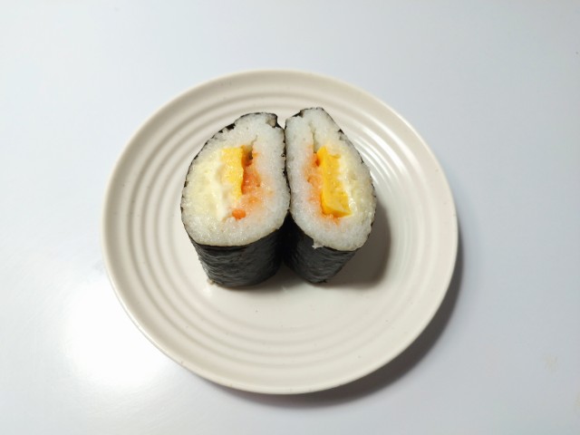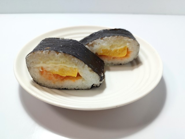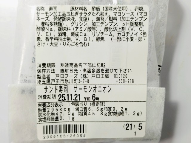 サーモンとオニオンの他に玉子焼きやマヨソースも入っています。