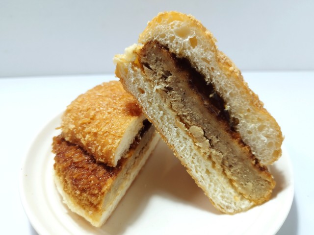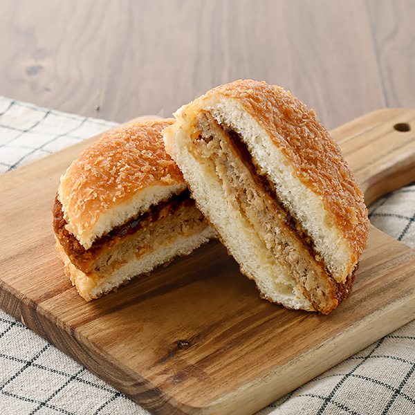 ジューシーなメンチカツと炙り醤油風ソースを揚げパンにサンドした、ボリュームのある惣菜パンです。