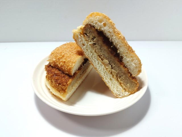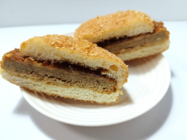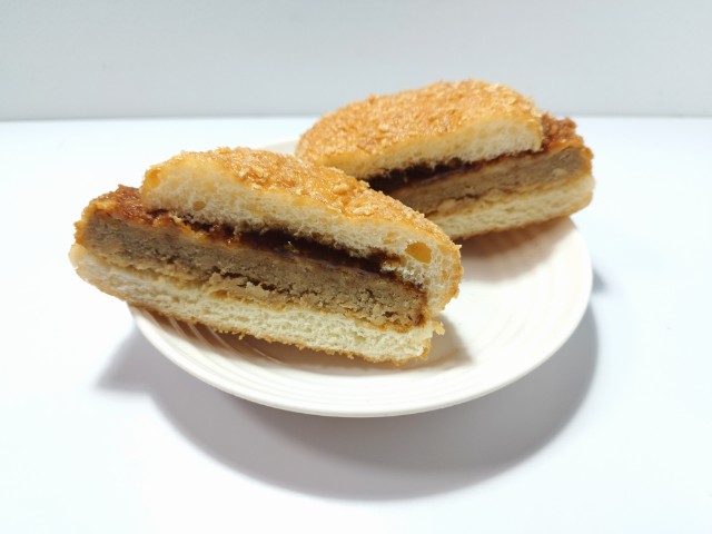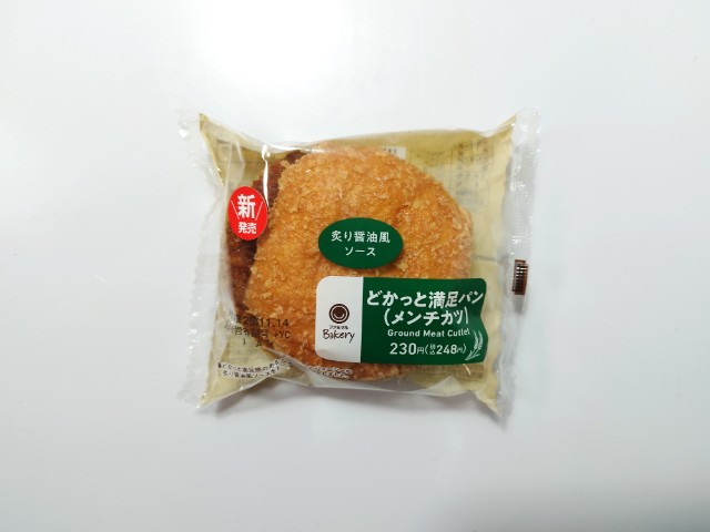 メンチカツを挟んだ惣菜パンです。以前に同じような商品で、お肉たっぷりメンチカツ揚げバーガー(2024年11月19日発売)がありましたが、今回はどかっと満足パンとしてサイズアップしています。そんなどかっと満足パンですが、パン生地はサクッとまではいかないまでも、見た目以上に軽い食感で油のしつこさもありません。メンチカツは、肉の旨味とジューシーな味わいがあって、美味しいのひと言です。ポイントは炙り醤油風ソースで、醤油の風味とさっぱりとした味わいで、メンチカツの美味しさをさらに引き立てています。大きさは普通の惣菜パンくらいで、小腹が空いた時や主食にあと一品追加したい時にピッタリです。ぜひどかっと満足パンを食べてみて下さい。