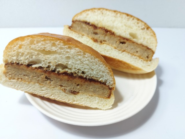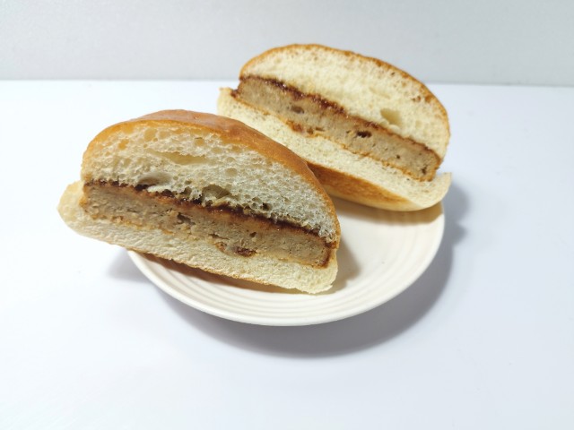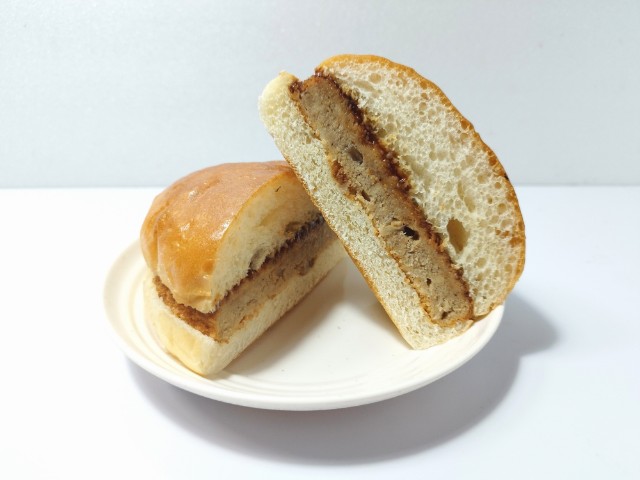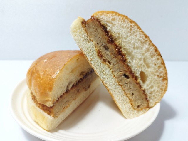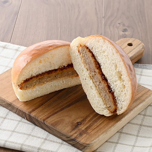ふんわりとした食感のバンズに、ジューシーなメンチカツとカツソースをサンドした、ボリュームのある惣菜パンです。