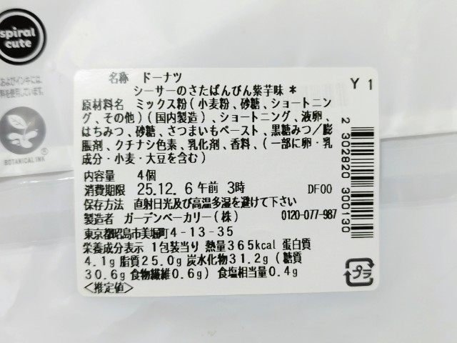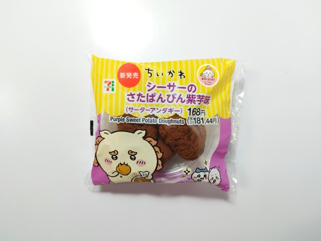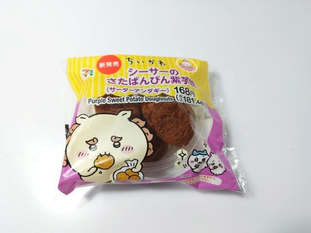 シーサーのさたぱんびんです。セブンイレブンでは昨年の「セブンイレブン×ちいかわ あったまるね、きもち」キャンペーン(2024年12月3日~25日)に続き、今年も「ちいかわと冬をたのしんじゃお!」キャンペーンを12月2日より開催していて、今回の商品もその対象商品の一つとなっています。そんなさたぱんびんですが、外はサクッと中はしっとりとした食感の生地は、やさしい甘味と紫芋の風味があって、美味しいのひと言です。やや口の中の水分をもっていかれる感じはあるので、飲み物と一緒に食べるのがオススメです。4個入ですが、1個はふた口サイズくらいなので、一人でも普通に食べ切れます。もちろんシェアするにもピッタリです。ぜひシーサーのさたぱんびんを食べてみて下さい。