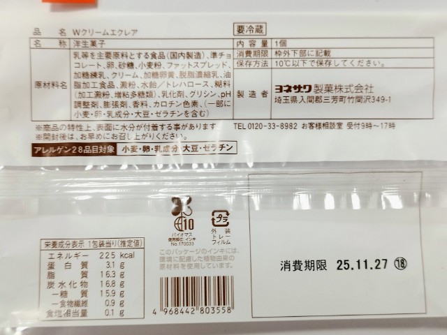ファミリーマートの商品「Wクリームエクレア」を食べてみました。