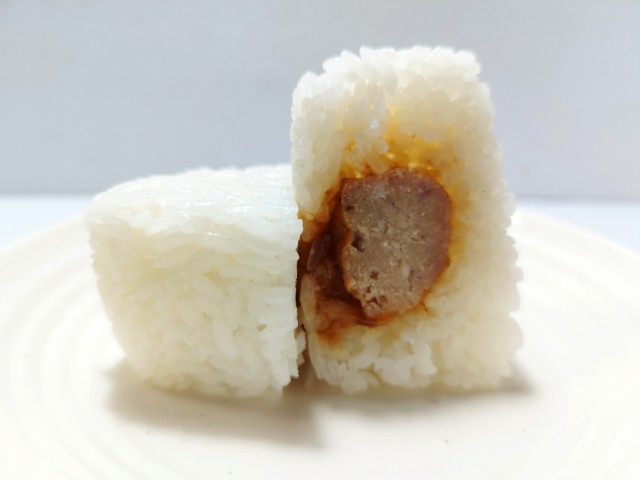 豚肉を使用したミートボールを中具にしたおむすびです。