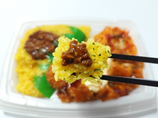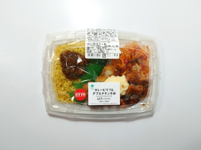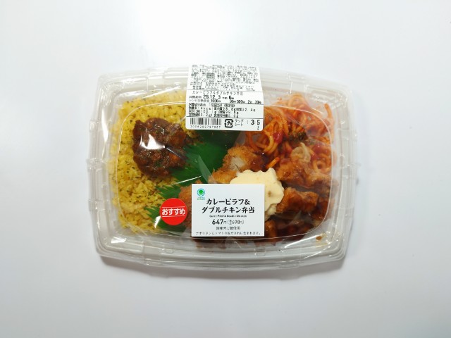 ファミリーマートの今週の新商品「カレーピラフ&ダブルチキン弁当」を食べてみました。